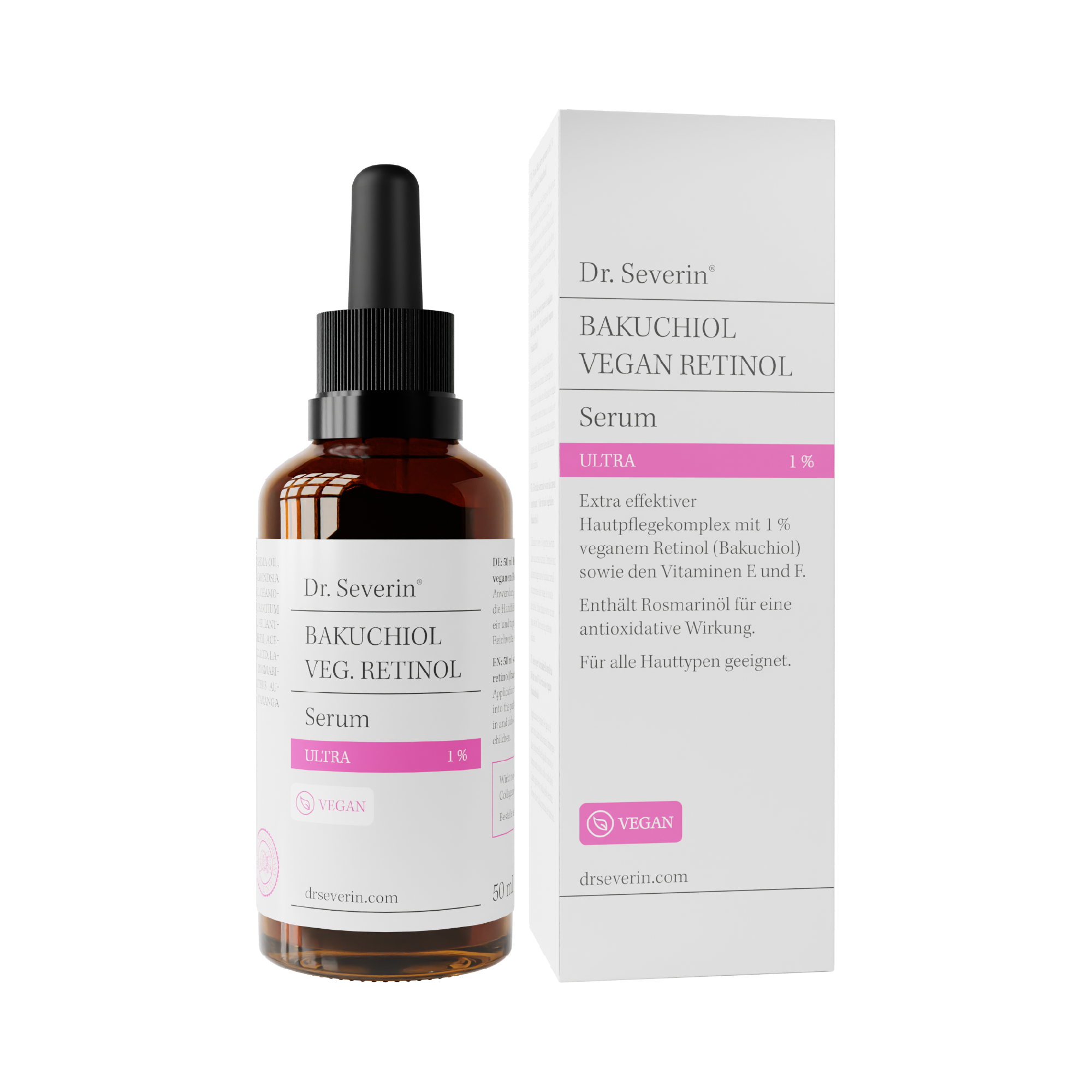 Le sérum ultra Dr. Severin 1 % Bakuchiol Vegan Retinol est un soin de la peau révolutionnaire qui utilise la puissance de la nature. Découvrez l'impressionnant effet du Bakuchiol, une alternative végétale au rétinol. Avec une concentration impressionnante de 1 %, ce sérum offre une solution douce mais tout aussi efficace pour réduire les ridules, les pores dilatés, les rides et les taches solaires sans les effets secondaires potentiels du rétinol. Grâce à la combinaison parfaite avec la vitamine E, la vitamine F et des huiles de haute qualité comme la marula, l'avocat et l'ylang-ylang, votre peau est intensément hydratée et régénérée. Offrez-vous ce soin révolutionnaire qui donne à votre peau un aspect radieux et jeune. Vegan.