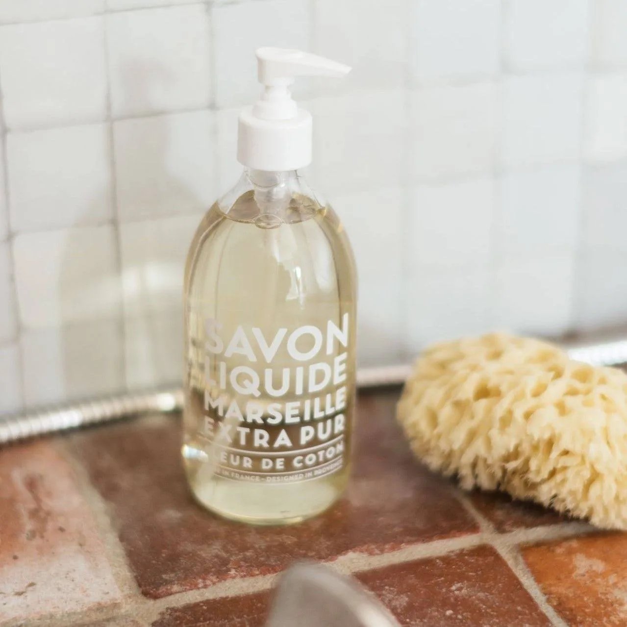 Le savon liquide de La Compagnie de Provence est traditionnellement fabriqué par saponification dans un chaudron – tout comme son ancêtre, le célèbre cube de savon de Marseille. Le Savon Liquide de Marseille Fleur de Coton se transforme au contact de l'eau en une mousse crémeuse qui nettoie efficacement la peau avec de l'huile d'olive et de l'huile d'amande douce de Provence, ainsi que de l'huile de pépins de raisin de France. La formule ultra-douce est non seulement idéale pour un lavage fréquent des mains, mais elle peut également être utilisée pour le nettoyage de l'ensemble du corps. Le parfum floral, délicat et poudré du savon enveloppe les sens et rappelle de manière merveilleuse la douceur unique du coton. Le Savon Liquide de Marseille Fleur de Coton se présente dans un élégant flacon pompe en verre coloré – un véritable accroche-regard dans la salle de bain et la cuisine. Savon liquide avec 95 % d'ingrédients naturels