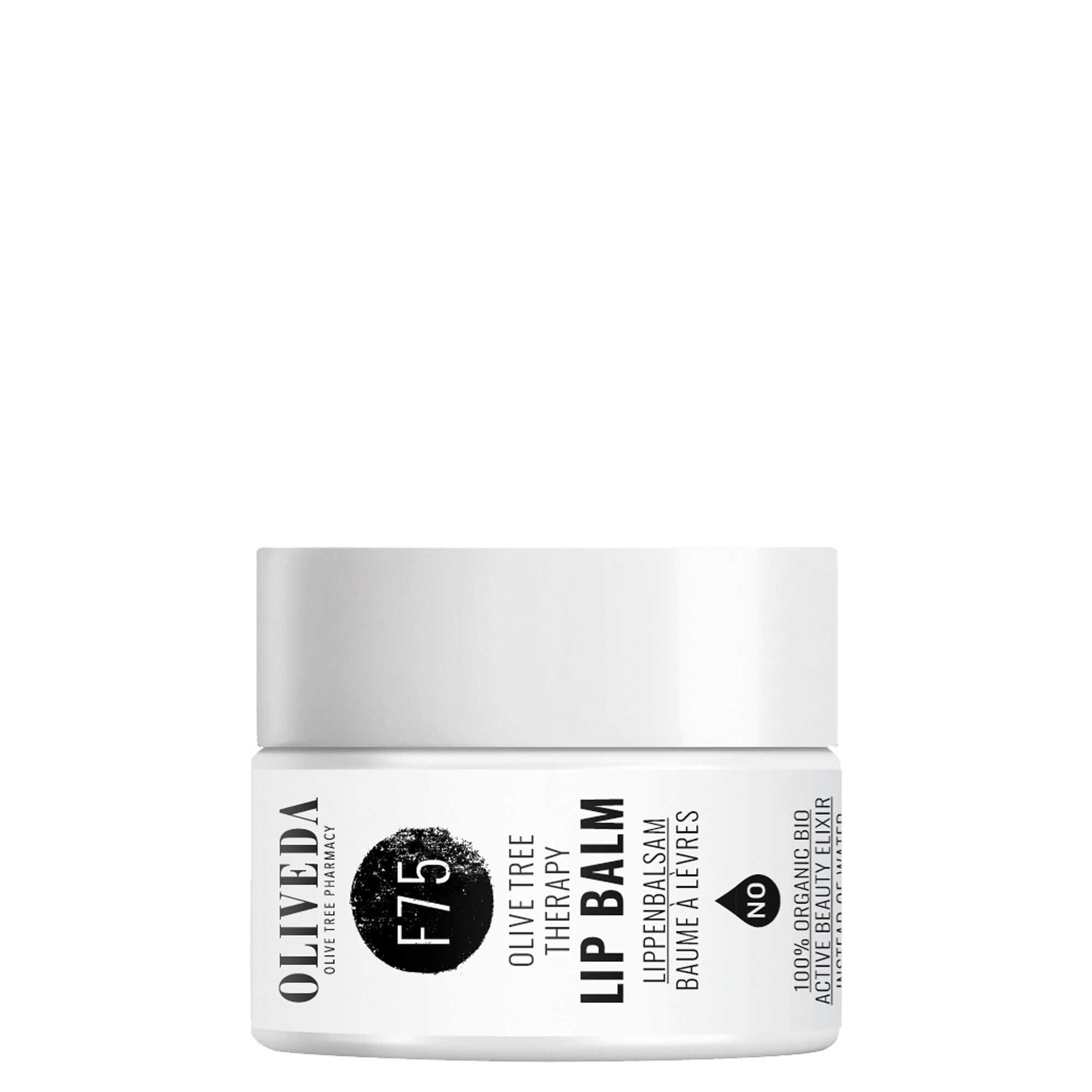 Le F75 Olive Tree Lip Therapy d'Oliveda est un baume à lèvres qui ne contient pas d'eau comme ingrédient. Il peut également être utilisé comme un masque à lèvres, appliqué généreusement avant de se coucher ou pendant la journée. Ainsi, le baume à lèvres Olive Tree Lip Therapy transforme littéralement les lèvres sèches et gercées en lèvres douces, lisses et souples en une nuit. En plus du Hydroxytyrosol et des huiles bioactives Arbequina pressées à froid issues de notre propre culture biologique, la lavande, la vanille et le polyphénol Oleuropein agissent en synergie avec le chlorophylle.