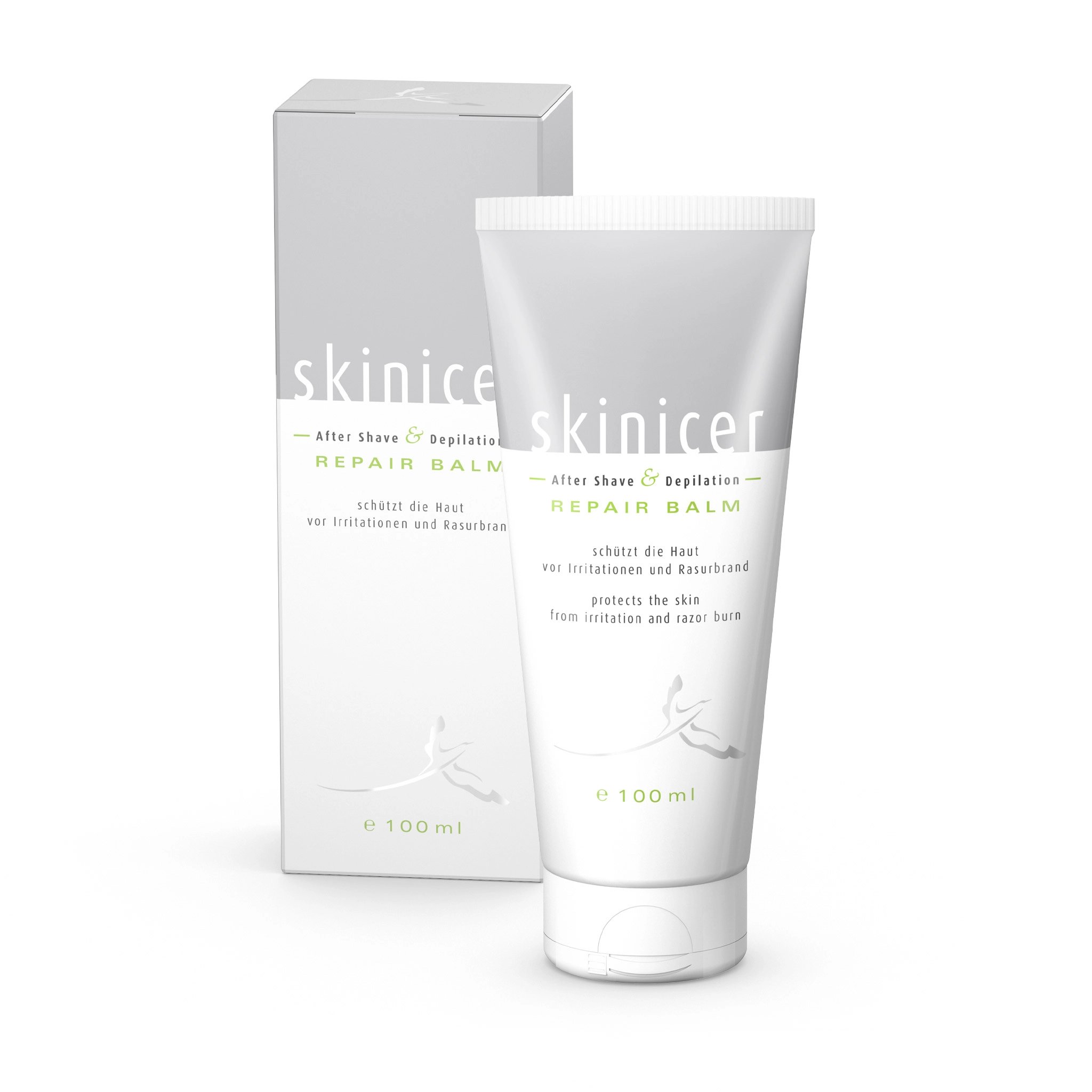 NOUVEAU !!! Le nouveau skinicer After Shave & Depilation®Repair Balm prévient, grâce à son ingrédient actif breveté à base de microalgues, Spiralin® les irritations possibles après le rasage ou l'épilation. Grâce à ses propriétés antibactériennes et apaisantes, il protège contre les rougeurs, les inflammations et les boutons qui peuvent survenir lors de l'épilation et apporte une hydratation rafraîchissante à la peau irritée. skinicer After Shave & Depilation®Repair Balm assure aux femmes et aux hommes une peau lisse et soyeuse.