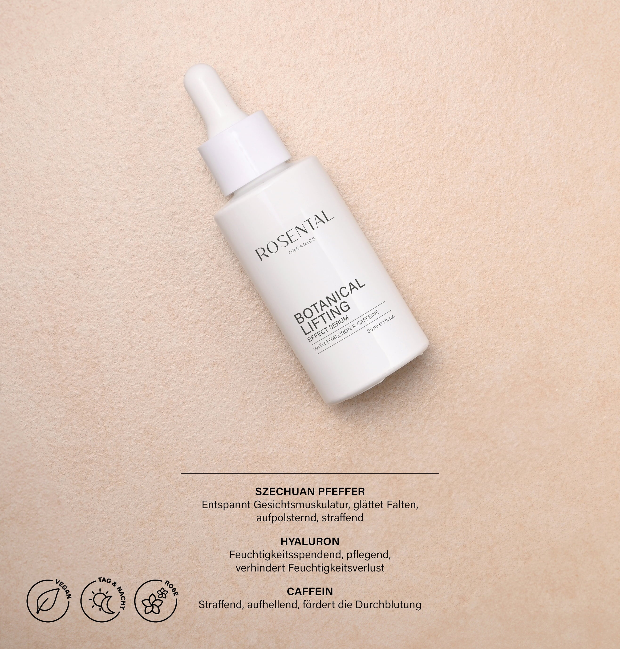 Le sérum Botox naturel sous un nouveau nom - avec le même contenu ! Moins de rides – sans injection : Effet Botox naturel pour un teint ferme. Le poivre de Sichuan détend les muscles du visage, ce qui réduit l'apparition des rides, les rides d'inquiétude, les pattes d'oie et lisse fortement les fines lignes à court terme. À long terme, l'hyaluron repulpe les fines lignes, hydrate et nourrit intensément. La caféine a un effet raffermissant, éclaircissant et favorise la circulation sanguine. Le sérum stimule la production de collagène de la peau et accélère la régénération cellulaire - il lutte donc également contre le vieillissement dû à la lumière. Pour un teint plus frais et plus ferme. Avec un doux parfum de rose. Convient à tous les types de peau et aux femmes enceintes. Vegan