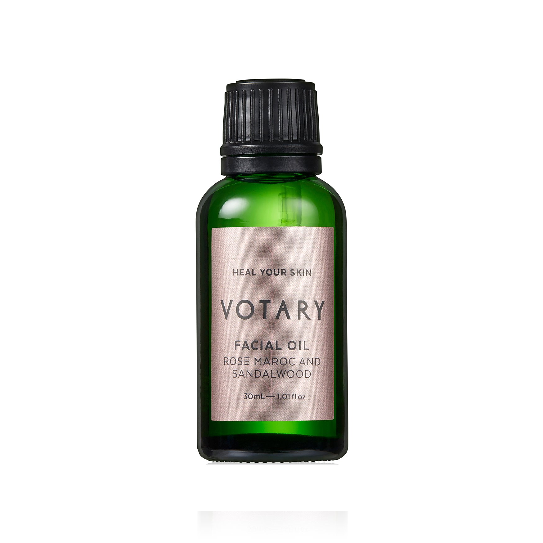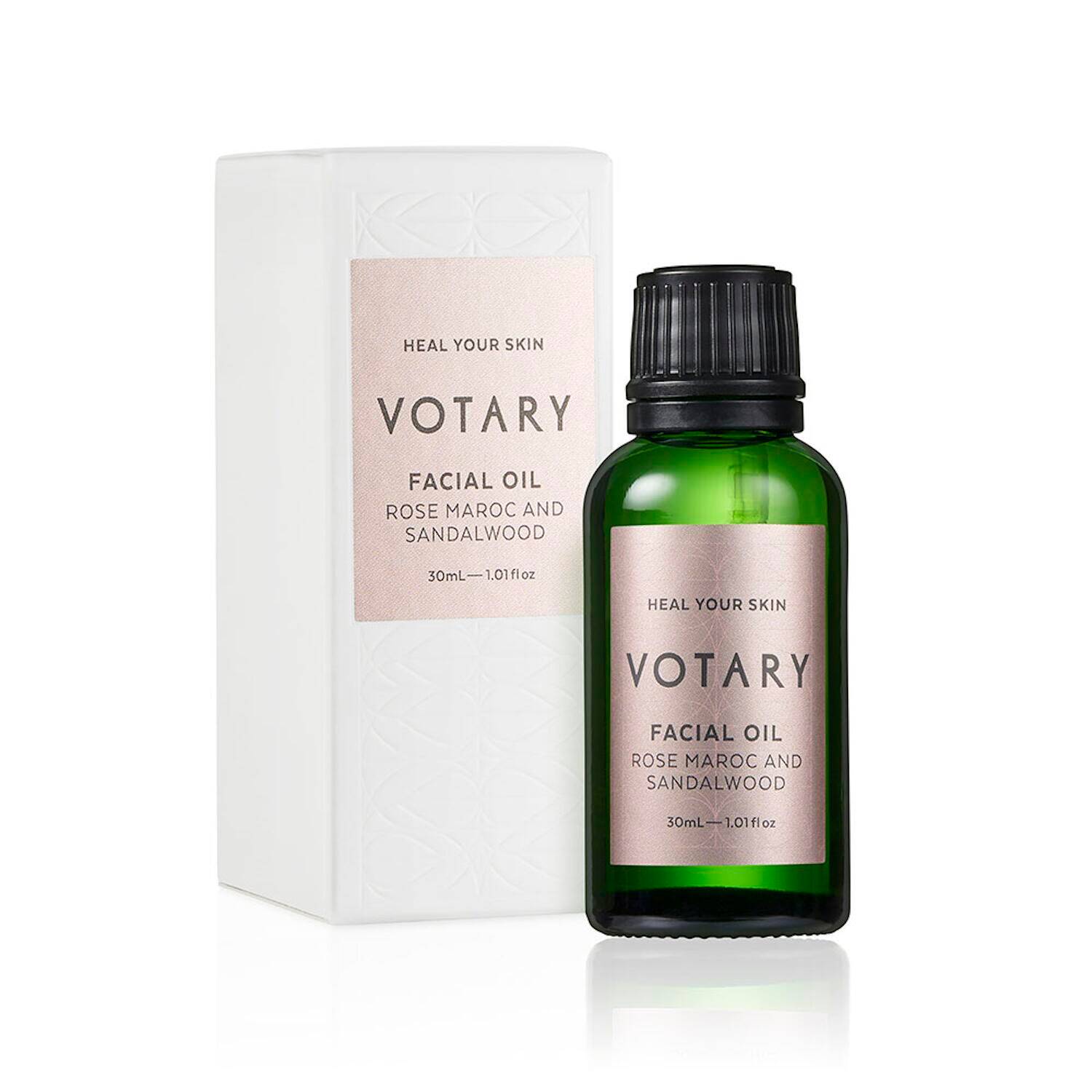 VOTARY Huile de Visage Rose Maroc & Bois de Santal pour Peau Sensible