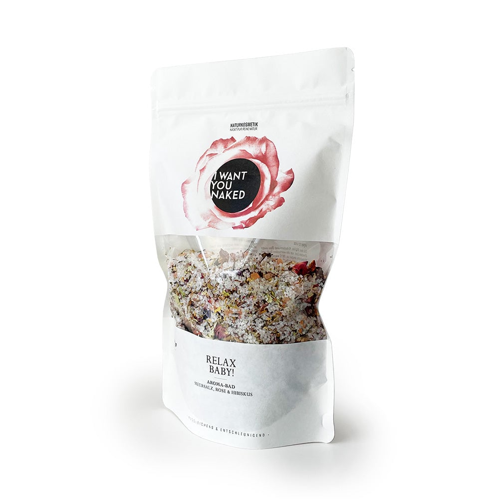 Le bain aromatique "RELAX BABY" sel de mer, rose & hibiscus de I want you naked offre détente et harmonie pour le corps, l'esprit et l'âme grâce à des plantes médicinales puissantes. La rose et l'hypericum ont un effet équilibrant agréable. Le sel amer contenu régule la protection naturelle de ta peau et lui apporte suffisamment d'hydratation. Ta peau sera douce et souple. Bain aromatique sel de mer, rose & hibiscus est 100% naturel, sans parfums, colorants et conservateurs synthétiques, silicones, paraffines ou matières premières à base de pétrole.