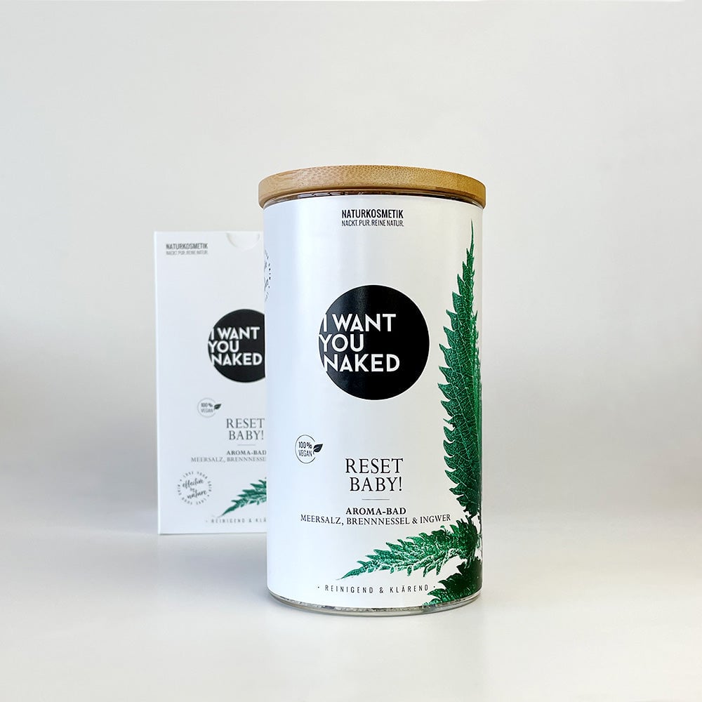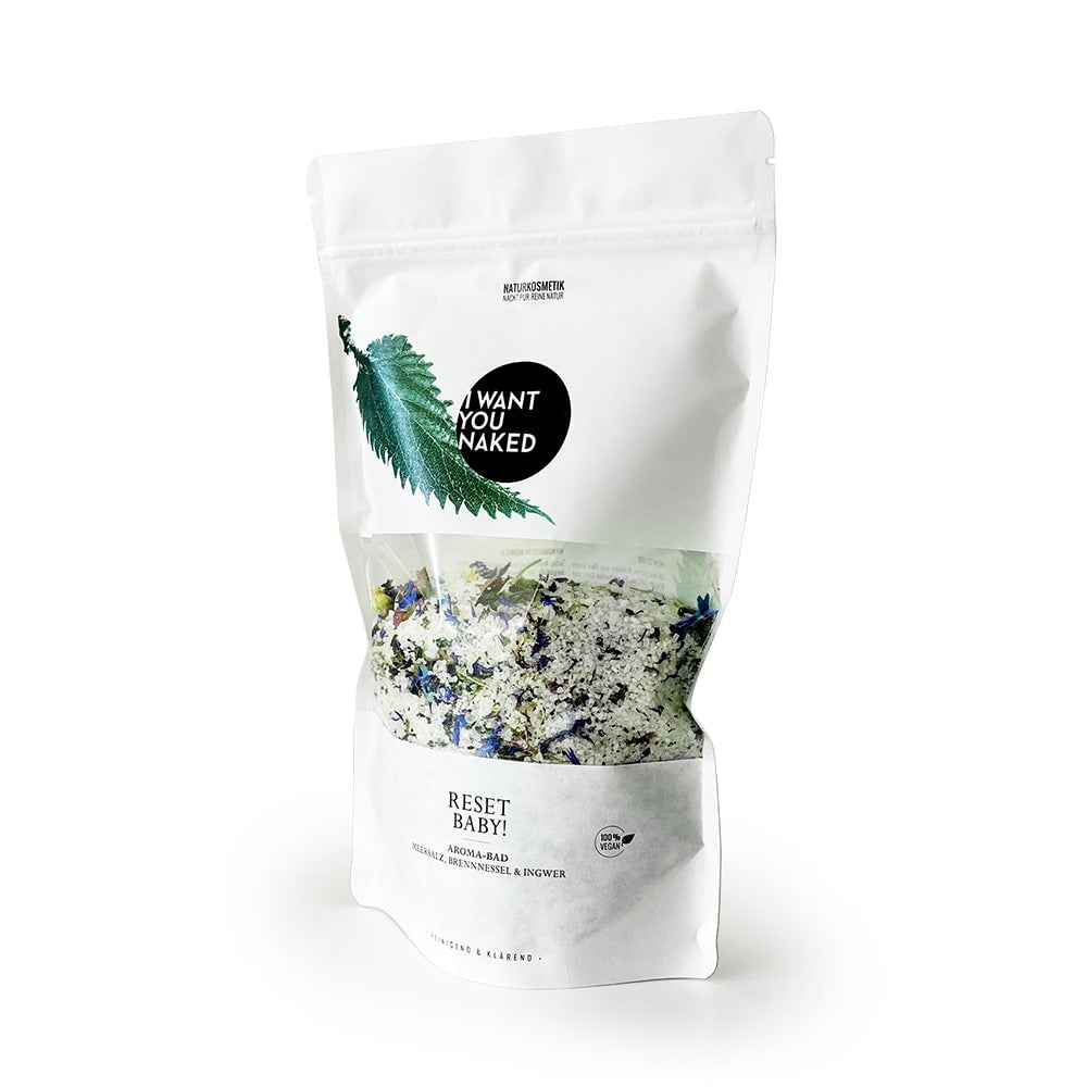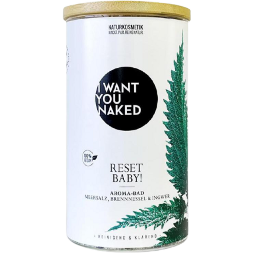 C'est parti ! Après ce bain, vous ne serez pas soudainement redevenu jeune. Mais vous vous sentirez ainsi. Car avec ce bain, vous obtenez une dose concentrée de détoxification naturelle. Une fois débarrassé de tout ce poids, une fois rempli de bons actifs. Et vous pouvez vous détendre tranquillement, car tout cela est pris en charge par votre peau. Boosté par des plantes médicinales efficaces, des sels riches en minéraux et des huiles raffinées. À base de sel de mer, de sel amer, de feuilles et de graines d'ortie, d'hortensia, de bleuet, de verveine citronnelle, d'huile essentielle de gingembre et de basilic. Ce "RESET BABY" Bain Aromatique Sel de Mer, Ortie & Gingembre de I want you naked agit grâce à l'ortie et au sel amer en détoxifiant, en éliminant les toxines et en offrant une sensation de liberté unique. Les tensions et les toxines sont libérées et les huiles délicates de gingembre et de basilic confèrent au bain un arôme citronné et frais – une expérience de bien-être revitalisante pour le corps, l'esprit et l'âme. Bain Aromatique Sel de Mer, Ortie & Gingembre est 100% naturel, sans parfums, colorants et conservateurs synthétiques, silicones, paraffines ou matières premières à base d'huiles minérales. Contenu fantastique, emballage durable. Ce bain aromatique est conditionné dans un joli verre avec un couvercle en bambou véritable. Trop beau pour être jeté : utilisez-le à nouveau et commandez les pratiques packs de recharge.