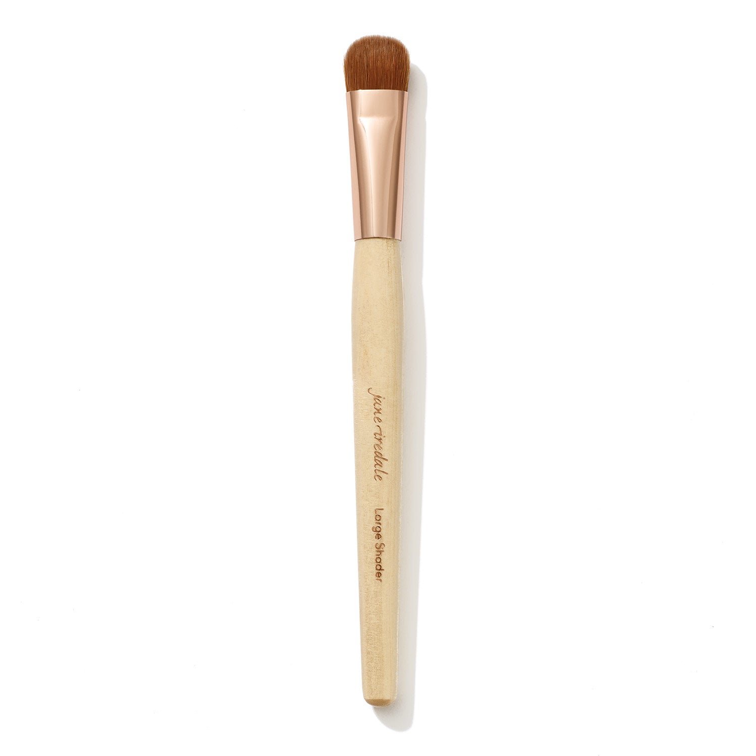 Le Large Shader Brush de Jane Iredale est un pinceau long, plat et de densité moyenne, fabriqué en poils de poney et de boeuf, une version plus grande du Deluxe Shader. Il est principalement utilisé pour les ombres dans le maquillage des yeux audacieux ou pour préparer les paupières avec de la poudre. Il peut également être utilisé pour les ombres d'Amazing Base et de PurePressed Base sous les yeux, autour du nez et de la bouche.