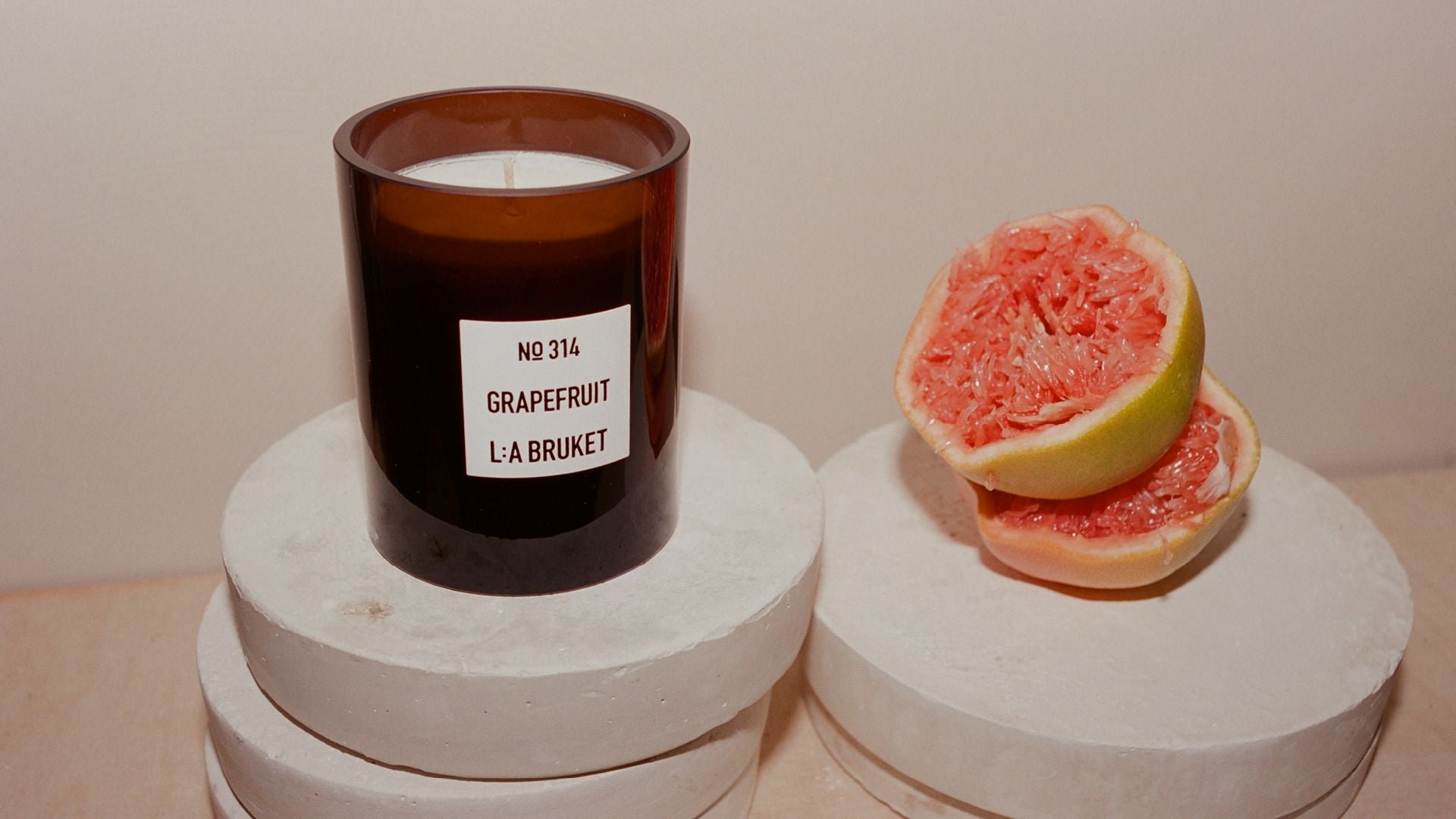 No.151 Bougie Parfumée Pamplemousse de LA:BRUKET diffuse un délicieux arôme de pamplemousse et a un effet perceptible sur les sens. Le parfum rafraîchissant euphorise, apporte une nouvelle énergie et éveille un sentiment de chaleur et de détente. Les bougies parfumées sont fabriquées à partir de cire de soja bio et sont coulées à la main par des professionnels qualifiés dans des verres soufflés bouche. Elles sont disponibles en quatre senteurs différentes. Le parfum aromatique et le design élégant remplissent chaque pièce d'une atmosphère merveilleuse. Certaines des bougies te redonnent de l'énergie lorsque tu te sens fatigué et tendu, d'autres t'aident à te déconnecter et à te détendre. Durée de combustion 260g = 45h+.